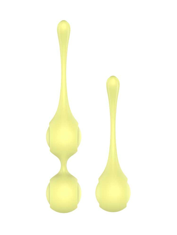 Το σετ περιέχει μία διπλή και μία μονή θήκη σε έντονο κίτρινο χρώμα κατασκευασμένες από λεία, ομαλή σιλικόνη, με μακρύ καλώδιο ανάκτησης για μεγαλύτερη ασφάλεια καθώς και 3 εναλλάξιμα ζευγάρια μπάλες με κινούμενα μεταλλικά σφαιρίδια στο εσωτερικό τους, βάρους 10 γραμμαρίων, 20,33 γραμμαρίων και 34,48 γραμμαρίων, οι οποίες θα φροντίσουν για την σεξουαλική σας υγεία και διασκέδασή.