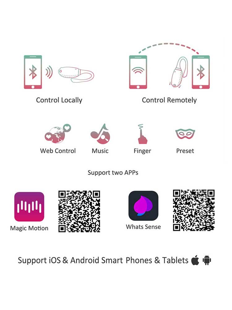 Ο δονητής λειτουργεί μέσω της δωρεάν εφαρμογής Magic Motion APP, δίνοντάς σας την ευκαιρία να πειραματιστείτε και εκτός σπιτιού είτε κρατώντας τον έλεγχο των οργασμών για τον εαυτό σας, είτε αφήνοντας τον /την σύντροφό σας να κάνει παιχνίδι.
