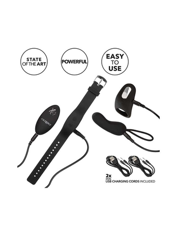 Το υπέροχο αυτό κιτ περιλαμβάνει 4 μοναδικά κομμάτια: έναν self-stimulator bullet (καμπυλόγραμμο διεγέρτη σε μορφή σφαίρας) με συνοδευτικό κομψό τηλεχειριστήριο -βραχιόλι και ένα δονούμενο enhancement ring (δαχτυλίδι ενίσχυσης) με συνοδευτικό φορητό τηλεχειριστήριο Cal XO.