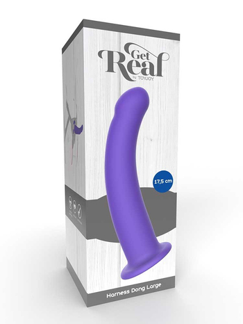 Κομψό και διακριτικό, σε όμορφο μοβ χρώμα με καθαρές γραμμές, εργονομική σχεδίαση και βελούδινα απαλή υφή, το Harness Dong Large διαθέτει έναν εύκαμπτο, καμπυλόγραμμο, στιβαρό κορμό, ο οποίος αγκαλιάζει φυσικά τις καμπύλες σας, στοχεύοντας με ακρίβεια τις ερωτογενείς περιοχές του σώματός σας, καθώς και μία στρογγυλεμένη άκρη με ελαφριά κλίση, η οποία θα σας προσφέρει εύκολη και άνετη διείσδυση.
