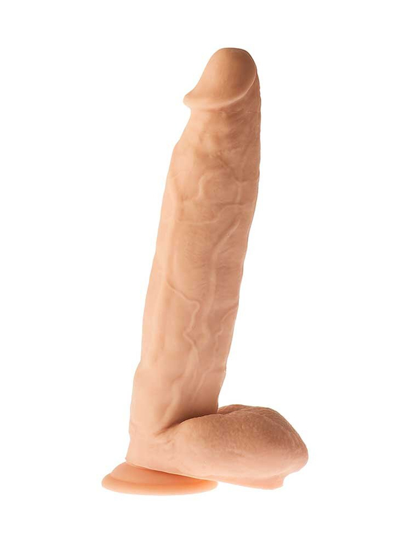 Το dildo ξεχωρίζει για τις απίστευτα εντυπωσιακές διαστάσεις, τη ρεαλιστική σχεδίαση, την απαλή, μεταξένια υφή και την άριστη λειτουργικότητα, χαρακτηριστικά, τα οποία του προσδίδουν ένα ευρύ φάσμα δυνατοτήτων. Το σώμα του, στητό και επιβλητικό με εμφανείς φλέβες και πτυχώσεις στην επιφάνειά του για extra απόλαυση, θα αγκαλιάσει τέλεια τις καμπύλες του σώματός σας, ενόσω το έντονα σχηματισμένο κεφάλι του, σε σχήμα βαλάνου και τα ζουμερά, πανέμορφα μπαλάκια του θα τονώνουν τα κρυφά σημεία σας χαρίζοντάς σας απίστευτους οργασμούς!
