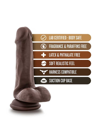 Κομψό, εντυπωσιακό και σούπερ σέξι, το ομοίωμα διαθέτει έναν, σε τέλεια ισορροπία απαλότητας και σταθερότητας, στιβαρό, ευθυτενή κορμό με σχηματισμένες φλέβες στην επιφάνειά του, μία καλοσχηματισμένη, ελαφρά στρογγυλεμένη βάλανο για άνετες διεισδύσεις και υπέροχους, ζουμερούς και σφικτούς όρχεις για έξτρα τόνωση των ευαίσθητων ερωτογενών σας ζωνών. Στη βάση του υπάρχει μία ιδιαίτερα ισχυρή βεντούζα για ξεχωριστή ασφάλεια και σταθερότητα και στα hands-free παιχνίδια σας.