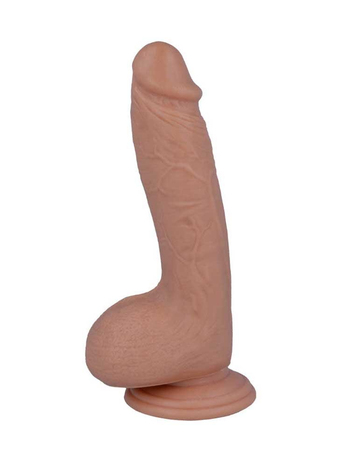 Εξοπλισμένο με έναν στητό, επιβλητικό, παχύ άξονα με ανάγλυφες φλέβες στην επιφάνειά του, ελαφρά στρογγυλεμένη, απαλή βάλανο, μελετημένη να διεισδύει εύκολα και να "στοχεύει" με ακρίβεια τις ευαίσθητες, ερωτογενείς σας ζώνες και καλοσχηματισμένα, σφικτά μπαλάκια στη βάση του, το dildo θα ερεθίσει τα καυτά σας σημεία σε κάθε κίνηση, χαρίζοντάς σας ανεπανάληπτες κορυφώσεις.