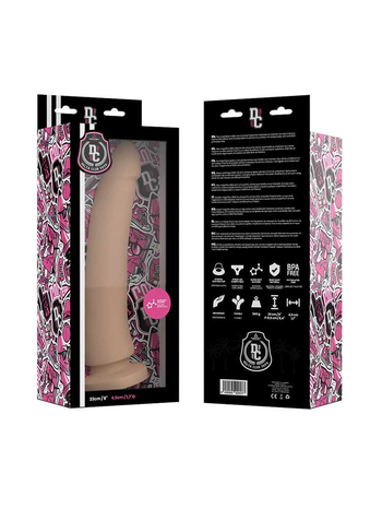 Κομψό και αισθησιακό, με σούπερ εντυπωσιακές διαστάσεις, το ομοίωμα διαθέτει ένα στενό, ελαφρά κυρτό κεφάλι για άνετη διείσδυση, δυναμικό κορμό με διάχυτες φλέβες στην επιφάνεια για έξτρα τόνωση και σφικτούς, ζουμερούς όρχεις, χαρακτηριστικά άκρως ρεαλιστικά, μελετημένα μέχρι και την τελευταία λεπτομέρεια.