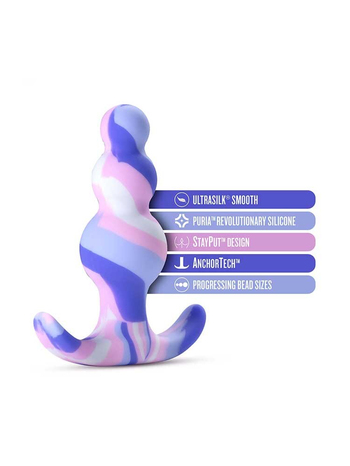 Μοντέρνο, κομψό, σούπερ σέξι, σε αστραφτερό λευκό, με πολύχρωμες μπλε-ροζ πινελιές, το Avant Twilight διαθέτει έναν εύκαμπτο, ελαστικό, κλιμακωτό άξονα με τρία αύξουσας διαμέτρου (από πάνω προς τα κάτω) πρωκτικά εξογκώματα, μελετημένα να βρίσκουν με ακρίβεια τα οικεία σημεία σας. Η βολβοειδής του άκρη προσφέρει εύκολη και άνετη διείσδυση στην ευαίσθητη περιοχή του πρωκτού, ενόσω ο ενωμένος άξονας αγκαλιάζει με φυσικό τρόπο τους πρωκτικούς μυς, πιέζοντας και διεγείροντάς τους με κάθε κίνηση, Τέλος, η πλατιά του βάση σε σχήμα άγκυρας κρατάει το Plug σταθερό ανάμεσα στους γλουτούς, προσφέροντας ασφάλεια και άνεση και καθιστώντας την ανάκτηση πραγματικά εύκολη υπόθεση.