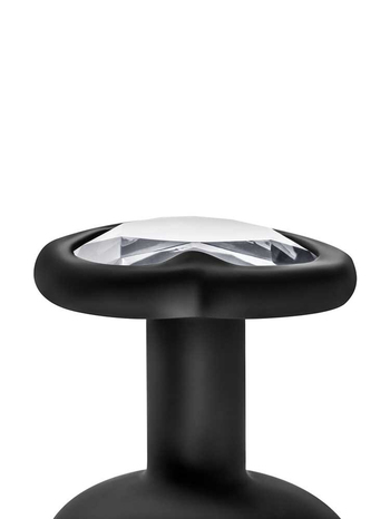 Στο κάτω άκρο του μία στιβαρή βάση, διακοσμημένη με ένα πανέμορφο, λαμπερό κόσμημα σε σχήμα καρδιάς εγγυάται εύκολη εξαγωγή, απόλυτο έλεγχο, καθώς και μεγάλη ασφάλεια και σταθερότητα στις κινήσεις, όσο βαθιά και αν… πάτε.