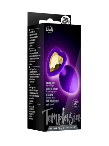Καλαίσθητο και σέξι, σε αριστοκρατικό μοβ χρώμα με ομαλή, λεία υφή και εργονομικό design, το Plug διαθέτει ένα λεπτό, κωνικό άκρο σχεδιασμένο για άνετη διείσδυση και μία στιβαρή βάση, με ένα πανέμορφο χρυσό διαμάντι σε σχήμα καρδιάς, η οποία κρατάει το plug απόλυτα σταθερό όσο δυνατά και αν παίζετε.