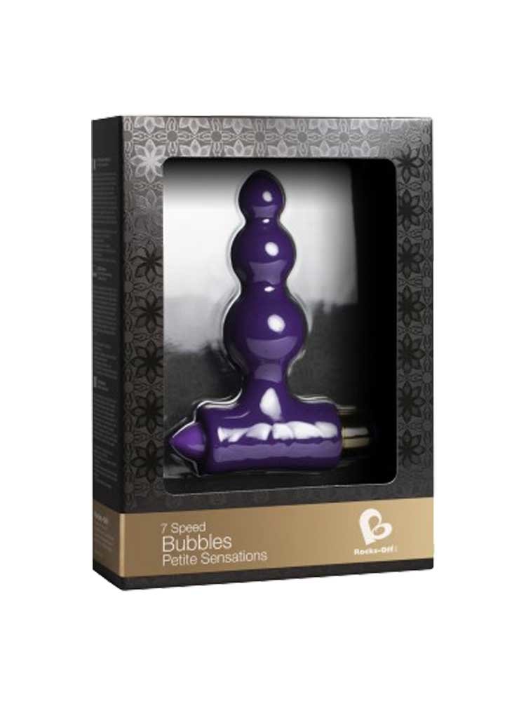 Το Petite Sensations Bubbles είναι ένα λεπτό σύνολο από τρεις κλιμακωτής διαμέτρου δονούμενες “φυσαλίδες”, το οποίο διαθέτει 3 διαφορετικές ταχύτητες και 4 παλμικές ρυθμίσεις, για να αποφασίζετε εσείς κάθε φορά τον τέλειο συνδυασμό που σας ξεσηκώνει. Οι ευέλικτες καμπύλες του επιτρέπουν στο λεπτό κωνικό άκρο του Bubbles Plug να γλιστρήσει ομαλά μέσα σας, διεγείροντας και τονώνοντας την ευαίσθητη περιοχή του πρωκτικού μυ, ενώ η ανθεκτική λαβή σε σχήμα -T- προσφέρει στους χρήστες ένα αξιόπιστο κράτημα και έναν ασφαλή και εύκολο χειρισμό.