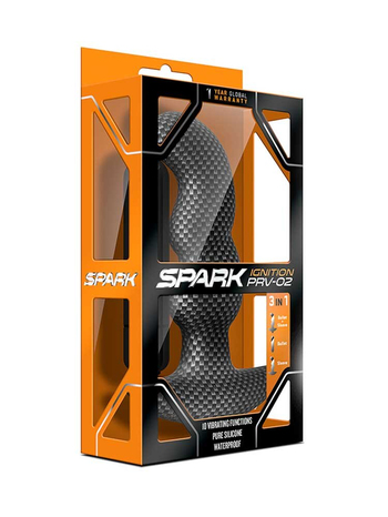 Άνετο, κομψό και μοντέρνο, διακοσμημένο εξωτερικά με στάμπα από ανθρακονήματα σε μαύρο - γκρι, για έξτρα νότα πολυτέλειας, το Spark Ignition PRV-02 διαθέτει ένα καμπυλόγραμμο, στιβαρό σώμα που μοιάζει με δίνη για σούπερ τόνωση και ένα έντονα κωνικό άκρο για πραγματικά έντονες διεισδύσεις που θα σας αφήσουν ξέπνοους.