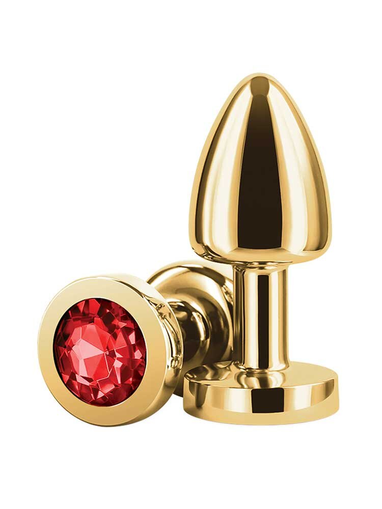 Κομψό και λαμπερό, σε λαμπερό, χρυσό χρώμα, σχεδιασμένό με μοναδική πολυτέλεια και φινέτσα, το plug διαθέτει ένα λεπτό, κωνικό άκρο, μελετημένο να διεισδύει με ευκολία και άνεση στο πρωκτικό κανάλι τονώνοντας τις νευρικές απολήξεις της επίμαχης περιοχής και ένα σταδιακά διευρυνόμενο, ομαλό, λείο σώμα με στιβαρή, πλατιά βάση σε στρογγυλό σχήμα, σχεδιασμένη να διατηρεί κατά τη διάρκεια της διείσδυσης το βύσμα σταθερό στη θέση του, όσο έντονα κι αν παίζετε, η οποία στο κάτω μέρος της έχει διακοσμηθεί με έναν στρογγυλό ροζ κρύσταλλο για πραγματικά εντυπωσιακές εμφανίσεις! Για εντονότερες απολαύσεις, δοκιμάστε να αφαιρέσετε το βύσμα κατά τη διάρκεια της ερωτικής κορύφωσης. Η ηδονή θα χτυπήσει κόκκινο!