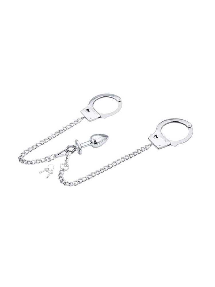 Εξερευνήστε τον αμαρτωλό κόσμο του BDSM και τολμήστε να πραγματοποιήσετε τις πιο σκοτεινές, kinky φαντασιώσεις σας με το υπέροχο σετ μεταλλικές χειροπέδες σε συνδυασμό με μία μικρή πρωκτική σφήνα από αλουμίνιο από την Ohmama.