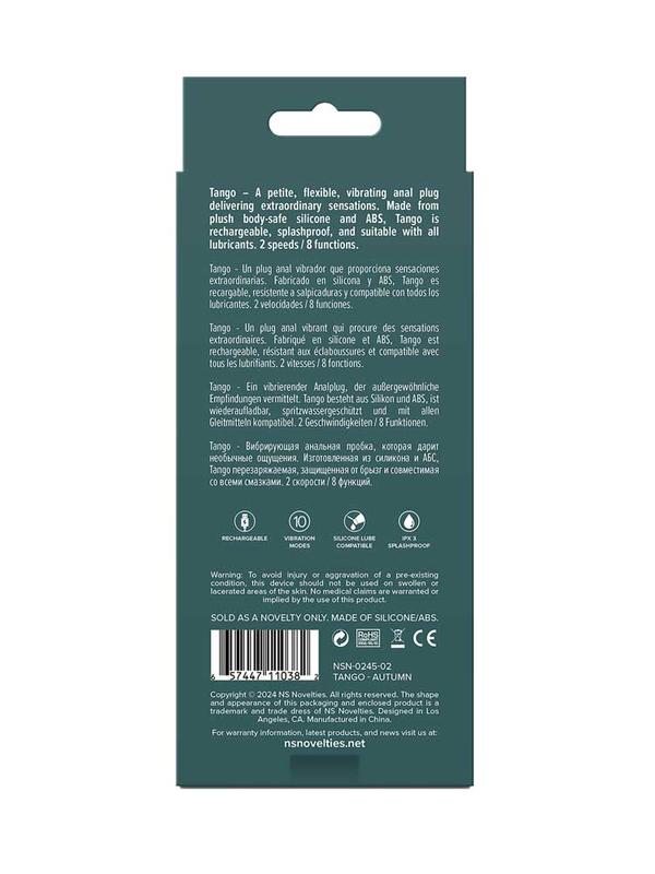 Με υψηλή αισθητική, δυναμικό σχεδιασμό και εργονομικό design, η Tango ξεχωρίζει για το λείο, ομαλό και ταυτόχρονα ελαστικό σώμα με τις υπέροχες καμπύλες, το ελαφρά στρογγυλεμένο άκρο, ιδανικό για άνετη διείσδυση, το ισχυρό, αλλά ιδιαίτερα αθόρυβο μοτέρ της με τις 10 δυναμικές λειτουργίες -2 ταχύτητες και 8 μοτίβα δόνησης για απαράμιλλη εξατομικευμένη διέγερση και την πλατιά, ευρεία βάση της, φτιαγμένη έτσι ώστε να αποκλείεται η πιθανότητα πλήρους εισόδου στο ορθό, χαρακτηριστικά, τα οποία θα καταστήσουν την διείσδυση μία πραγματικά ανώδυνη και απολαυστική εμπειρία.