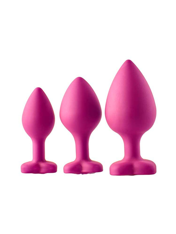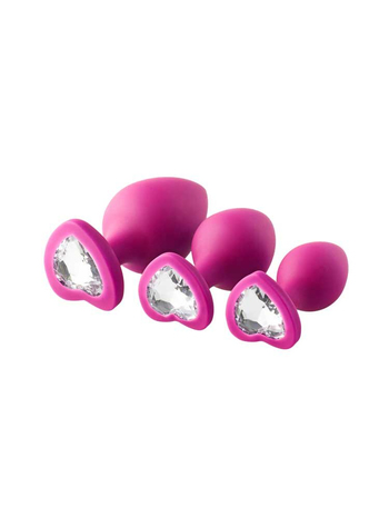 Με κομψό, εργονομικό design, ομαλή, λεία υφή και ζωηρό, ροζ χρώμα, τα plugs είναι ειδικά σχεδιασμένα να ξεσηκώνουν τις αισθήσεις και να χαρίζουν μοναδικές εμπειρίες backdoor απόλαυσης. Τα βύσματα είναι εξοπλισμένα με ένα ελαφρά μυτερό άκρο, ιδανικό για εύκολη διείσδυση, σταδιακά αυξανόμενη διάμετρο για ακόμη μεγαλύτερη ευχαρίστηση και μία στιβαρή βάση σε όμορφο σχήμα καρδιάς στολισμένη με ένα πανέμορφο διαμάντι που θα σας κάνει να φαίνεστε λαμπερή και σαγηνευτική, και η οποία παράλληλα κρατάει το plug σταθερό στη θέση του, όσο δυνατά κι αν παίζετε.