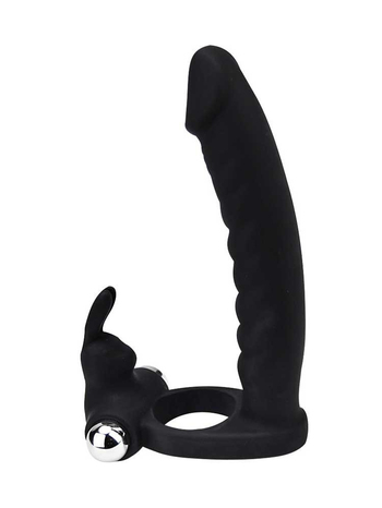 Προκλητικό και σέξι, σε κλασικό μαύρο χρώμα το Strap-On διαθέτει έναν λεπτό, αλλά στιβαρό άξονα σε σχήμα πέους με ελαφρά κωνικό κεφάλι για άνετη διείσδυση και εξογκώματα στην επιφάνεια για μέγιστη διέγερση στο κολπικό κανάλι και στο μαγικό σημείο g, καθώς και έναν ελαστικό δακτύλιο πέους με δύο μικρά λαγουδίσια αυτάκια σχεδιασμένα να γαργαλούν αδιάκοπα την κλειτορίδα της συντρόφου σας κατά τη διείσδυση, χαρίζοντάς της αισθαντικές στιγμές ικανοποίησης. Στα ατού του και το εφοδιασμένο με 7 λειτουργίες ευχαρίστησης, αποσπώμενο δονητάκι τύπου σφαίρα (bullet vibrator) στην κορυφή του δακτυλίου, το οποίο θα ενισχύσει περαιτέρω την οικειότητα και την ικανοποίηση κατά τη διάρκεια του παιχνιδιού.