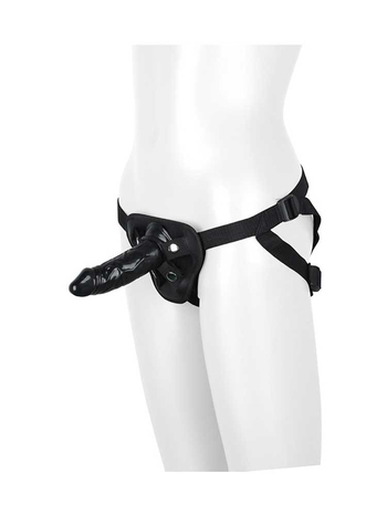 Το σετ περιλαμβάνει μία κομψή, ρυθμιζόμενη στους περισσότερους σωματότυπους, μαύρη ζώνη, εφοδιασμένη με τρουκς και o-rings στο μπροστινό μέρος, μέσα στα οποία συνδέεται τέλεια το πλαισιωμένο με ανάγλυφες φλέβες και πτυχώσεις στιβαρό μαύρο dildo, προσφέροντάς σας συναρπαστικά δυναμικό και σταθερό παιχνίδι (power play). Το ομοίωμα, σχεδιασμένο να μοιάζει με αληθινό πέος έχει υπέροχα απαλή υφή και είναι σχετικά ευλύγιστο ώστε να βρίσκει εύκολα και άμεσα τον επιθυμητό στόχο χαρίζοντάς σας εκρηκτικές και θυελλώδεις κορυφώσεις. Η ζώνη είναι συμβατή και με άλλα dildos της αγοράς, τα οποία εφαρμόζουν στις ζώνες με τον ίδιο ακριβώς τρόπο, ενώ το ομοίωμα μπορεί να χρησιμοποιηθεί και μόνο του, χωρίς τη ζώνη.