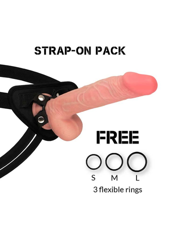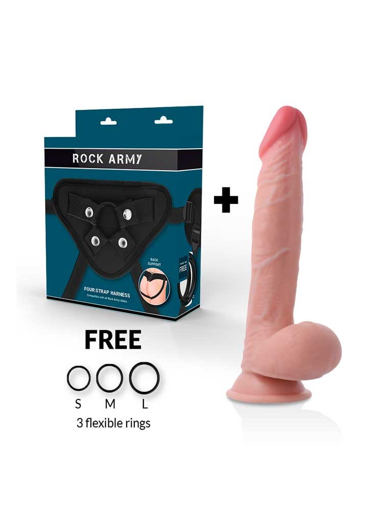 Και μαζί του το απαραίτητο συνοδευτικό αξεσουάρ! Η υπέροχη Rock Army Four Strap Harness, η εξαιρετική γυναικεία ζώνη από PU με μεταλλικές λεπτομέρειες, σε επιβλητικό μαύρο χρώμα, σχεδιασμένη να εφαρμόζει τέλεια γύρω από τη μέση ή τους γλουτούς, χάρη στους τέσσερις πλήρως ρυθμιζόμενους, νάιλον ιμάντες της και το καλαίσθητο κλείσιμο στο πίσω μέρος της, το οποίο της χαρίζει ξεχωριστή νότα πολυτέλειας. Στο κέντρο της ζώνης υπάρχει υποδοχή, στην οποία τοποθετούνται τα ομοιώματα για… ολοκληρωμένη διασκέδαση. Στη συσκευασία θα βρείτε επιπλέον 3 εύκαμπτους δακτυλίους διαφορετικών μεγεθών για να εναλλάσσετε όλα τα μεγέθη dildos της εταιρίας.
