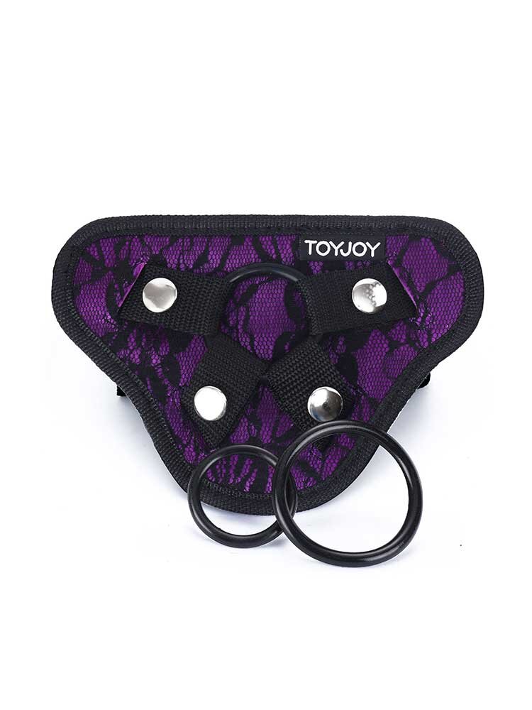 Το μπροστινό της τμήμα, σχεδιασμένο με ρυθμιζόμενα κλιπς και εφοδιασμένο με μαλακό “μαξιλαράκι” για βελούδινα απαλή αίσθηση και άνεση στη χρήση, σχηματίζει μικρή εσοχή, στην οποία μπορεί να τοποθετηθεί δονητής, τύπου bullet, για έξτρα δονητική διάσταση στην απόλαυση ενώ τα πλαϊνά μέρη του είναι διακοσμημένα με πανέμορφη δαντέλα σε εντυπωσιακό μοβ χρώμα για μία έξτρα νότα πολυτέλειας. Επιπλέον, περιλαμβάνει τρεις εναλλάξιμους δακτυλίους σιλικόνης, σε διαφορετικά μεγέθη (5cm, 4.5cm & 3.5cm.), για την υποδοχή των αγαπημένων σας dildos.